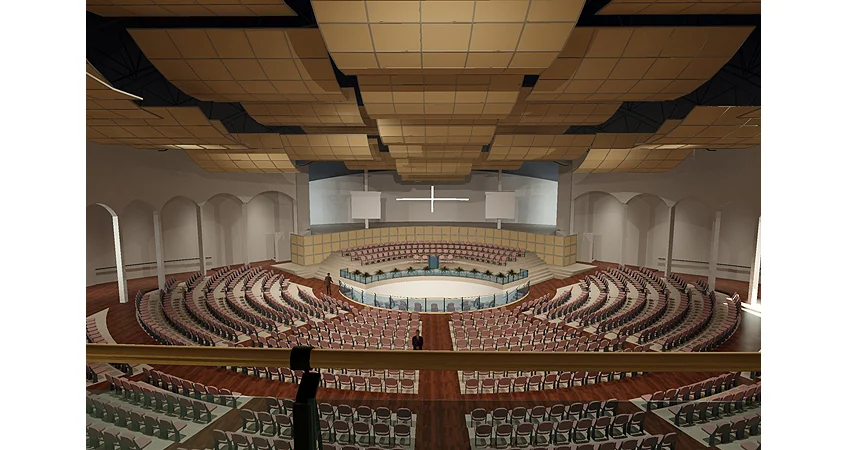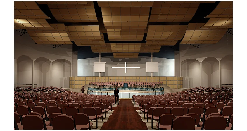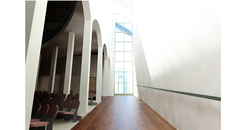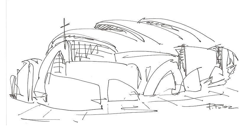 Paul N. Poloz desires to fascinate the visitors of the future church through the irrational designs of the large monumental forms. The composition of these forms seek to depict a festive air—the effervescence of life. They reflect an exploration for meaningful symbols and moods. This project also demonstrates that in the effort to integrate diverse and fearless architectural style, the architect may cause them to serve different purposes, either as the keynote of the composition or as a virtue of their sculptural and simplified figurativeness.