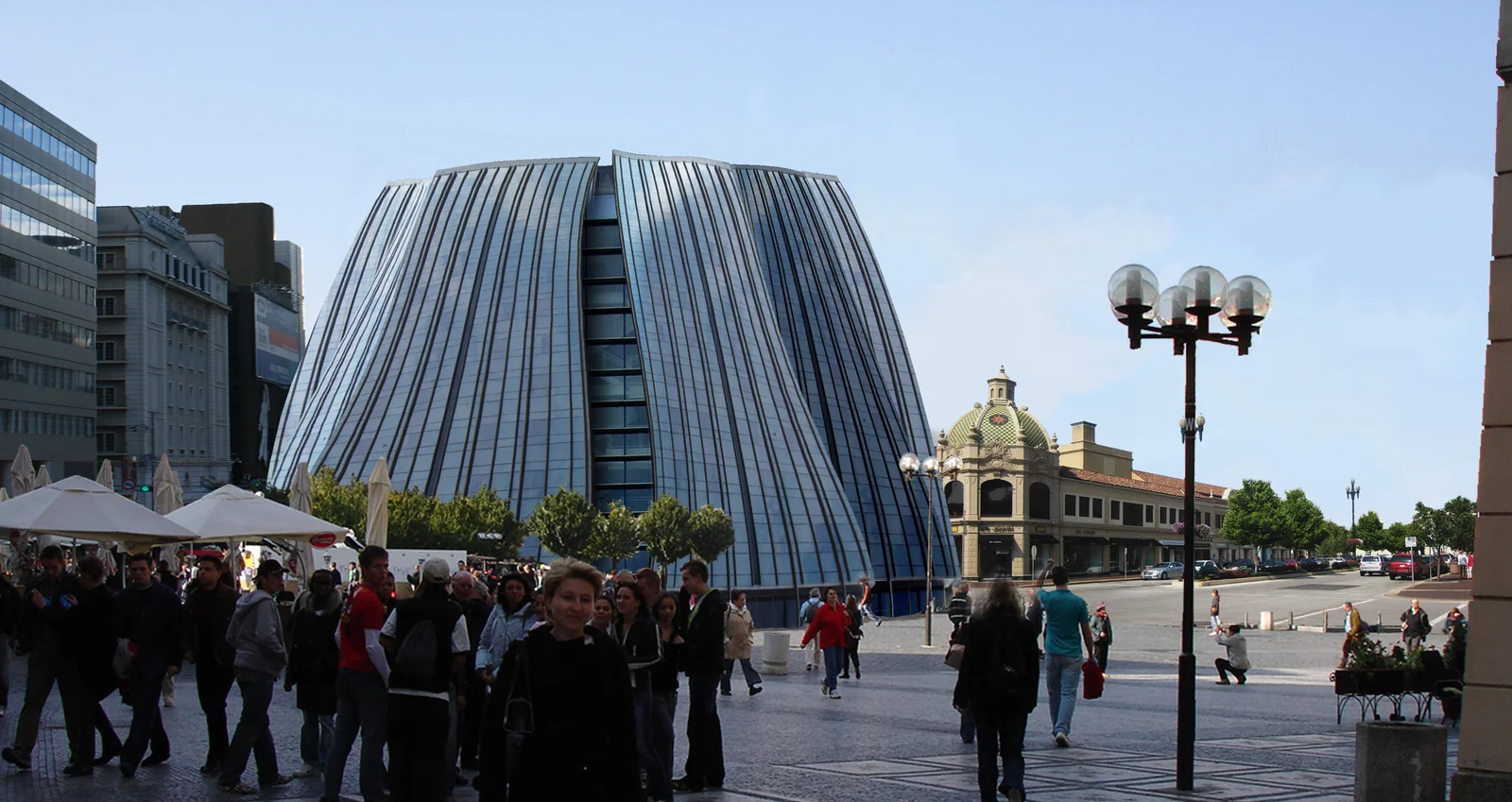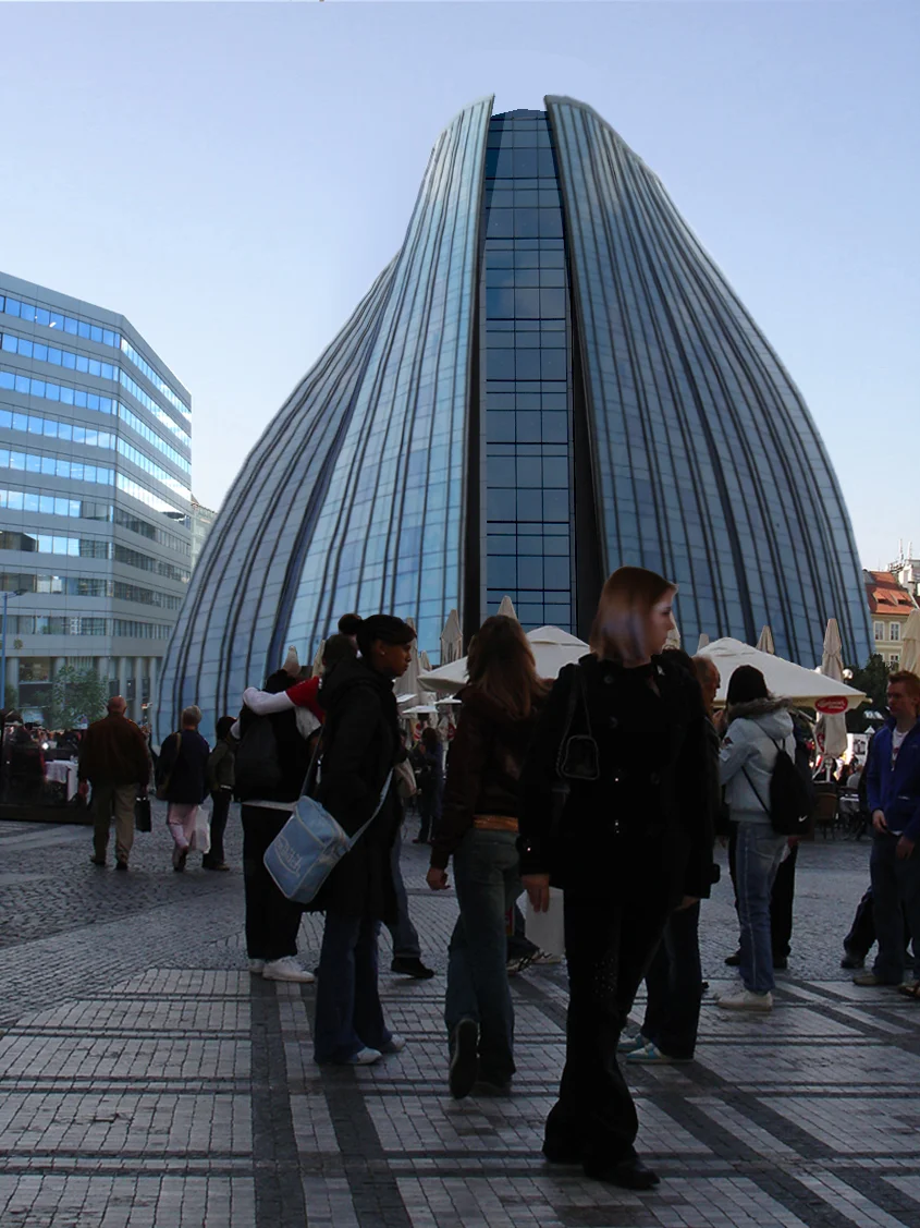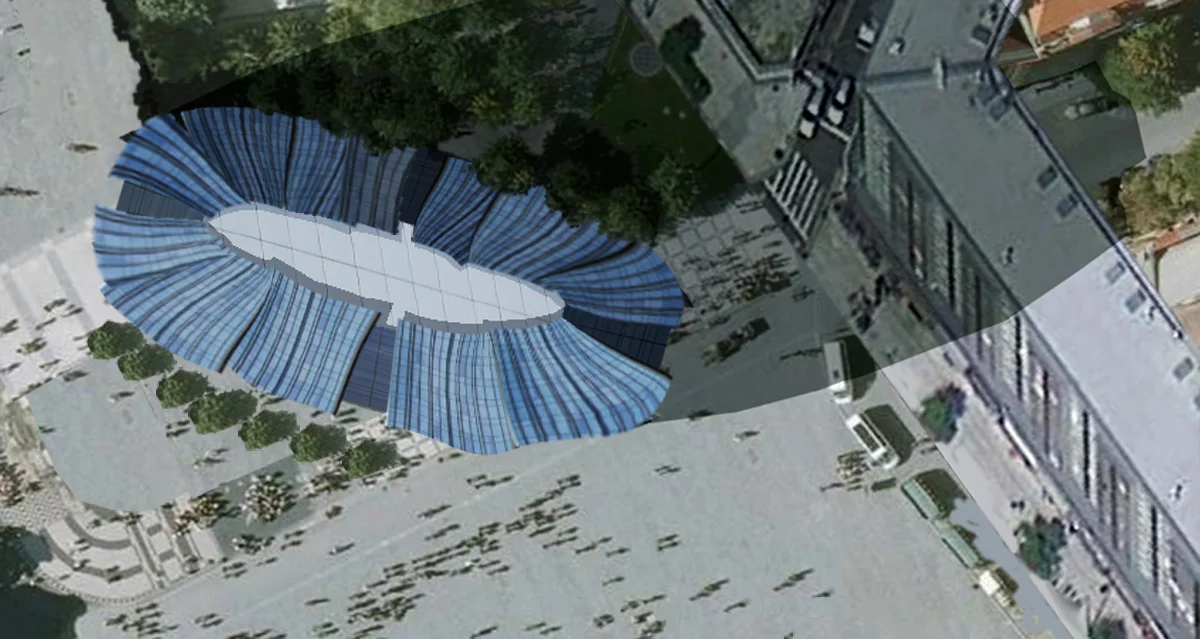 Five stories cultural center designed with the double skinned glass exterior curtain wall in the winter time works as transparent insulation. In the summer time is aimed to supply cooled air with a mechanical ventilation system