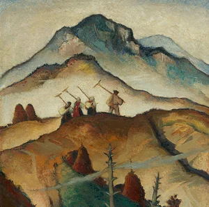 In a unique style, Martin Benka has defined the typically Slovak – highlander – life, the Slovak mountainous landscape with round and waved hillsides, valleys, the craggy and steep mountains, with strips of ridges and fogs, populated with the lives of its inhabitants: raftsmen, lumberjacks, peasants and shepherds, diggers and hay-rakers, women and men both at work and resting, often bent under their knapsacks or leaning over a field cradle…
