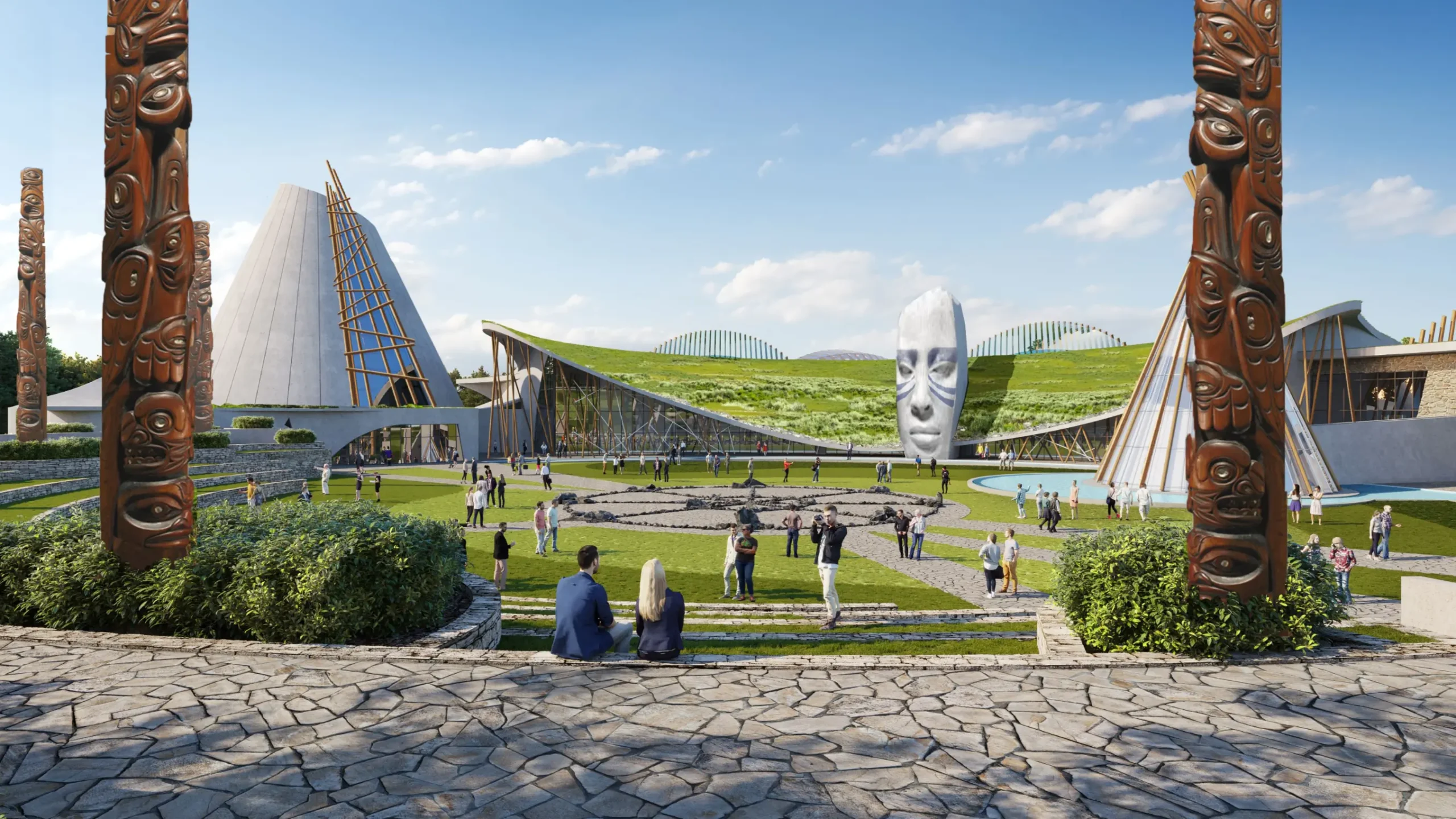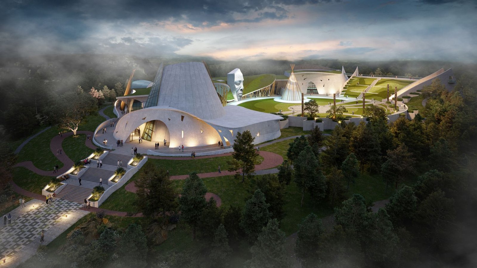 The visitor will discover an amazing environment reflecting the image of an Indigenous village fitting into the surrounding landscape and undulating in the topography of the Grand Canyon. It is the creative response to the Native American desire for the creation of a special sacred place. The new Monument-Shrine will emphasize a deep connection to the ancestors, to the Native World, Mother Earth, to the sacred places, and the spiritual cultures and traditions of Indigenous tribes.